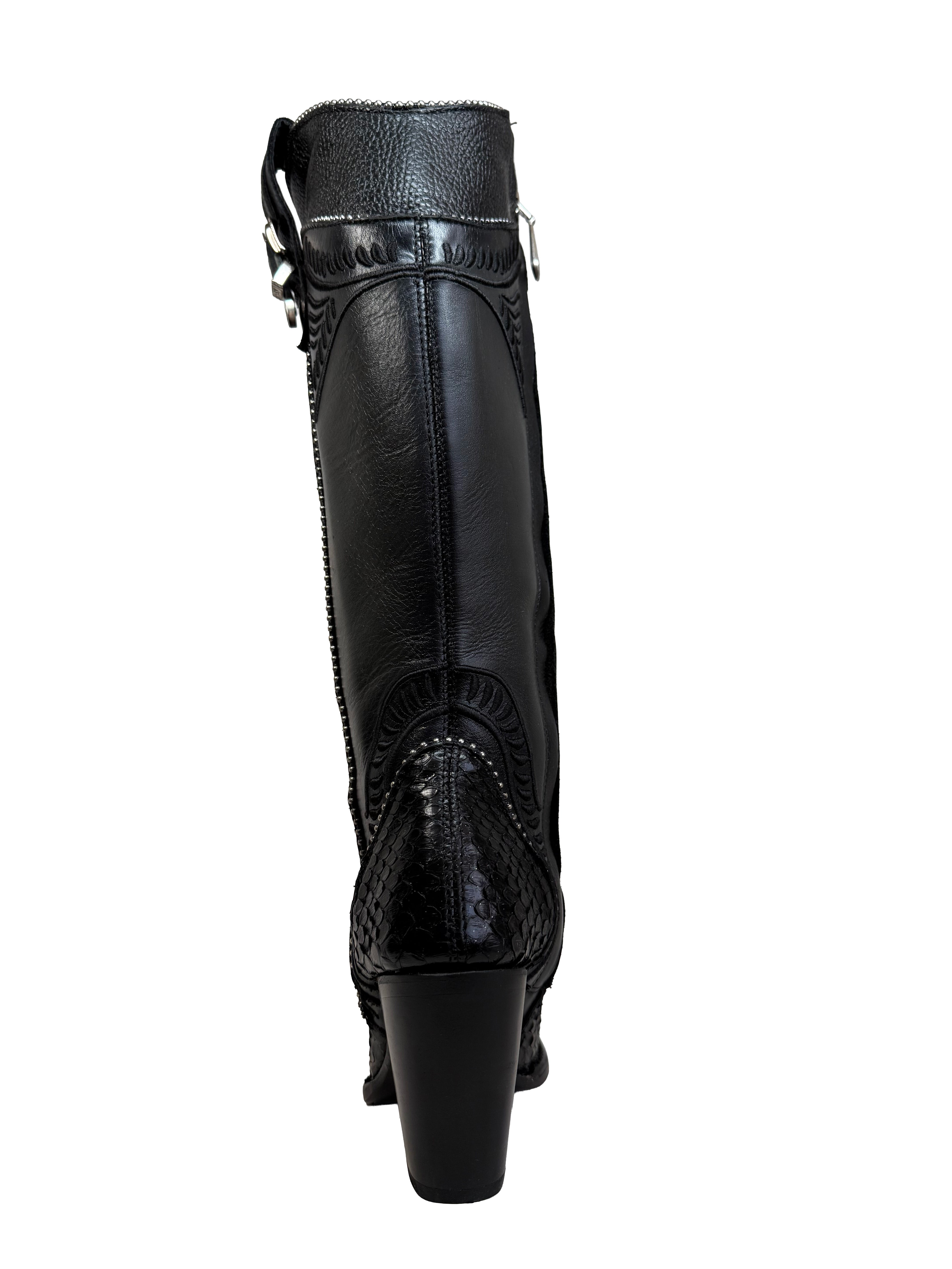 Elevate your style with these Black Alligator Boots from the special edition Imperio Cuadra . Expertly crafted with high-quality black alligator leather, these boots exude elegance and luxury. Perfect for any occasion, they elevate any outfit for the ultimate sophisticated look. Limited edition.