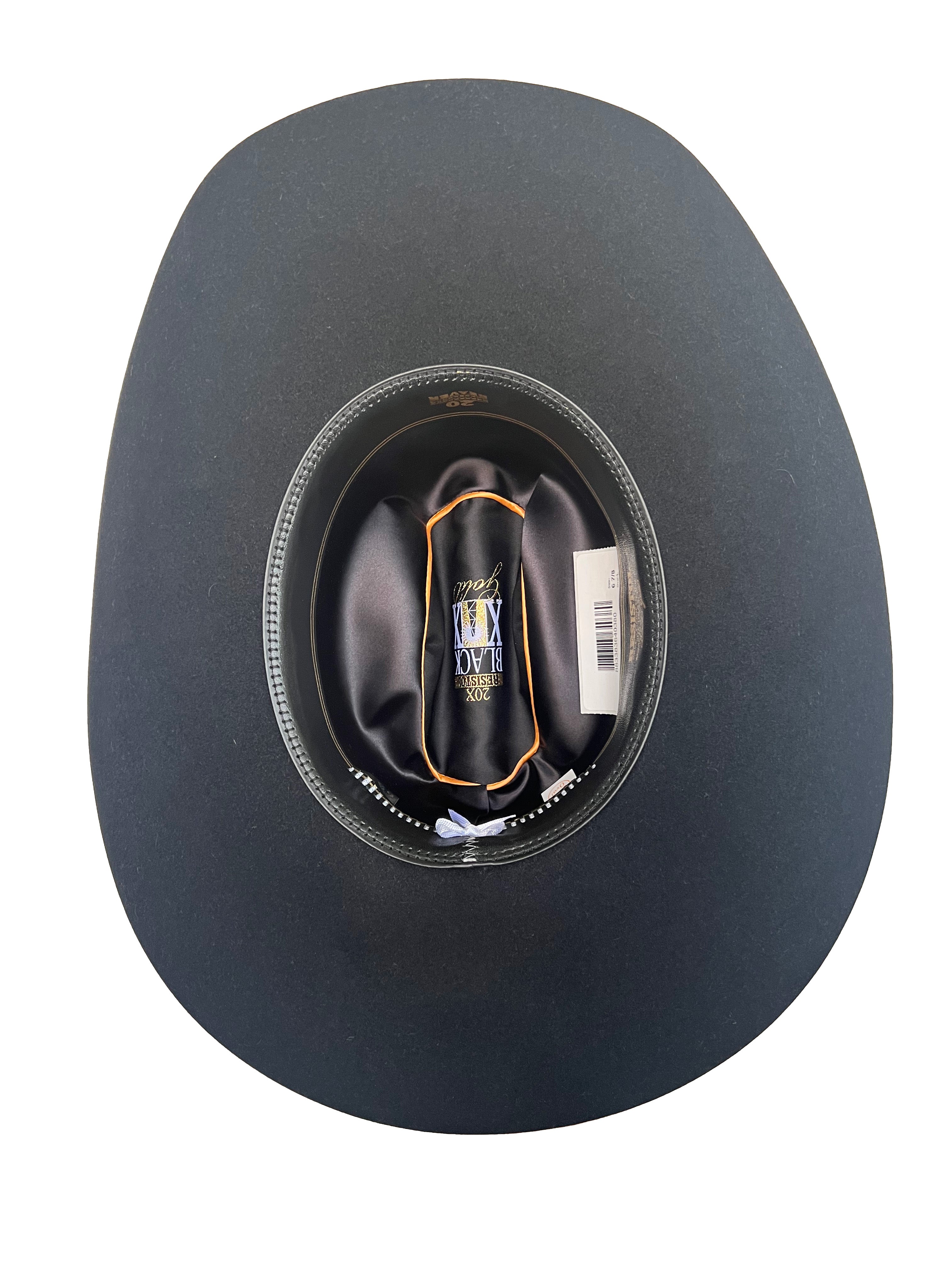 This 20x Black Gold Edition from Resistol brand offers a premium 20x grade quality, making it a top choice for any hat connoisseur. The elegant black gold edition adds a touch of sophistication, making it a perfect accessory for any outfit. Elevate your style with this exquisite hat.