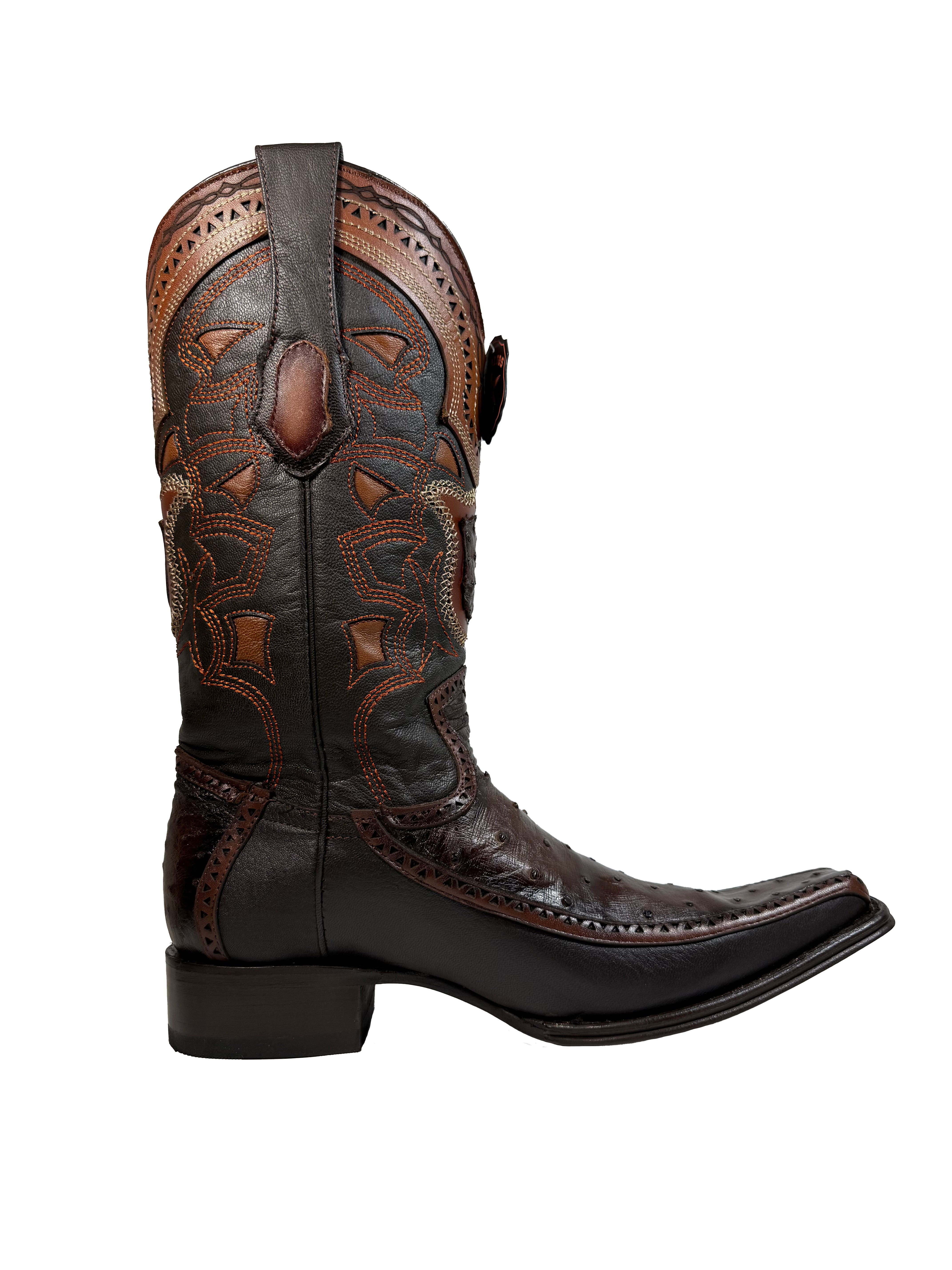 Narrow Square Toe Ostrich Faded Brown