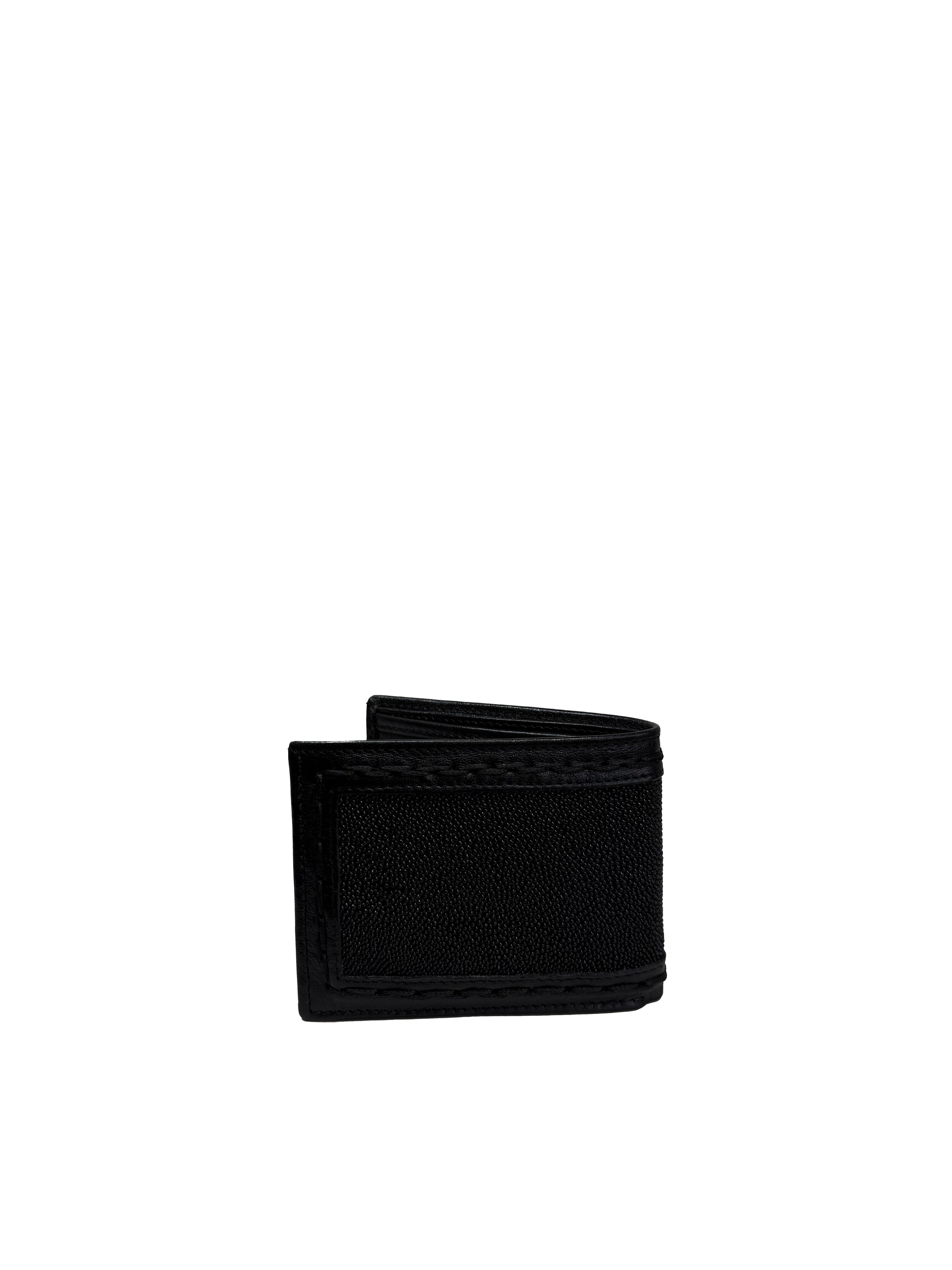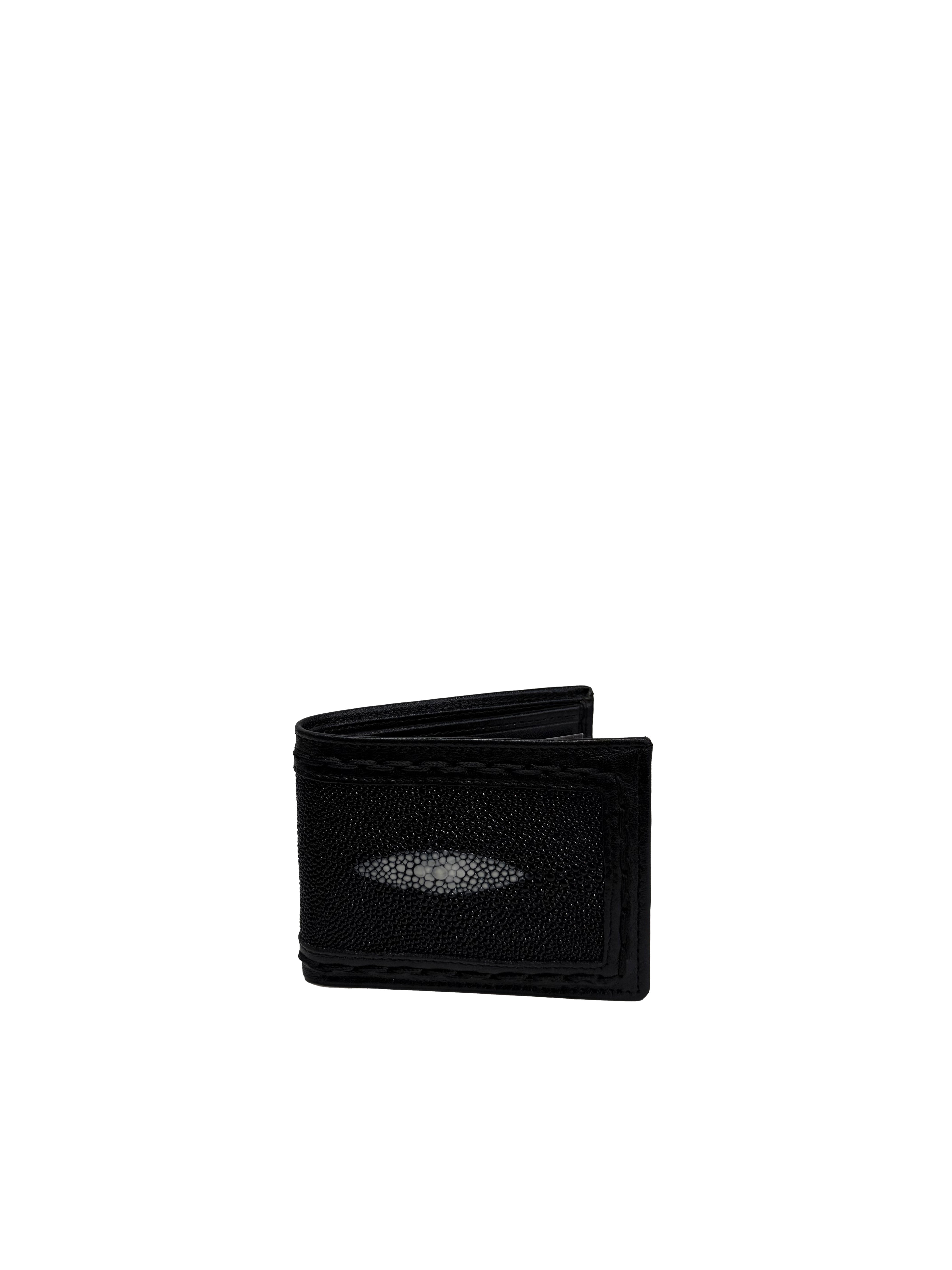 Expertly crafted from stingray leather, this black Cuadra wallet showcases the material's distinctive pearl-like texture and exceptional style.