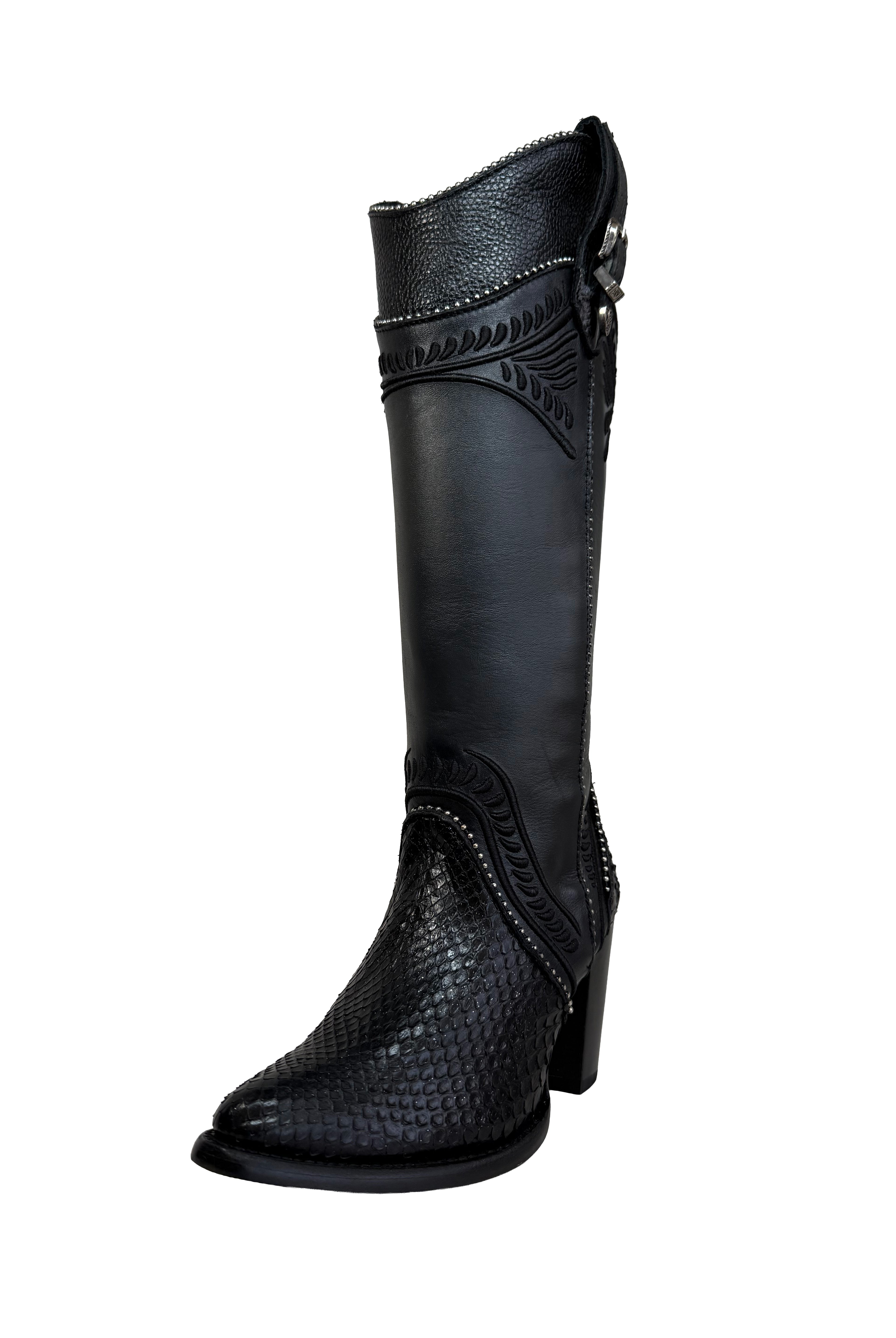 Elevate your style with these Black Alligator Boots from the special edition Imperio Cuadra . Expertly crafted with high-quality black alligator leather, these boots exude elegance and luxury. Perfect for any occasion, they elevate any outfit for the ultimate sophisticated look. Limited edition.